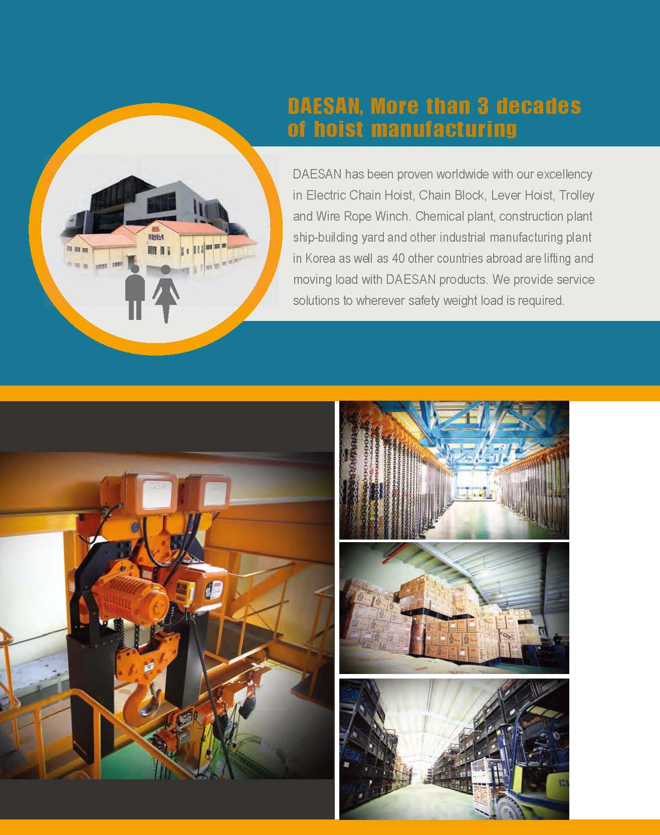 DAESAN大山INOTEC是一家專業(yè)生產(chǎn)物料起重搬運產(chǎn)品 - 環(huán)鏈電動葫蘆,手拉葫蘆,手扳葫蘆,手動單軌小車,鋼絲繩絞盤等相關起重設備制造商,并為客戶做服務解決方案。...