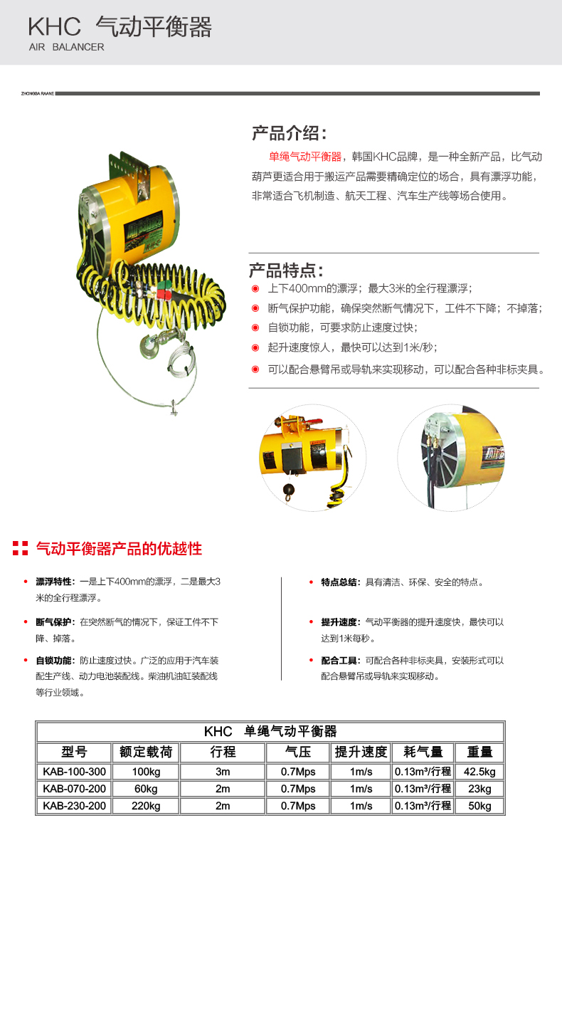 - KHC氣動(dòng)平衡吊還具備自鎖功能,防止速度過快。
