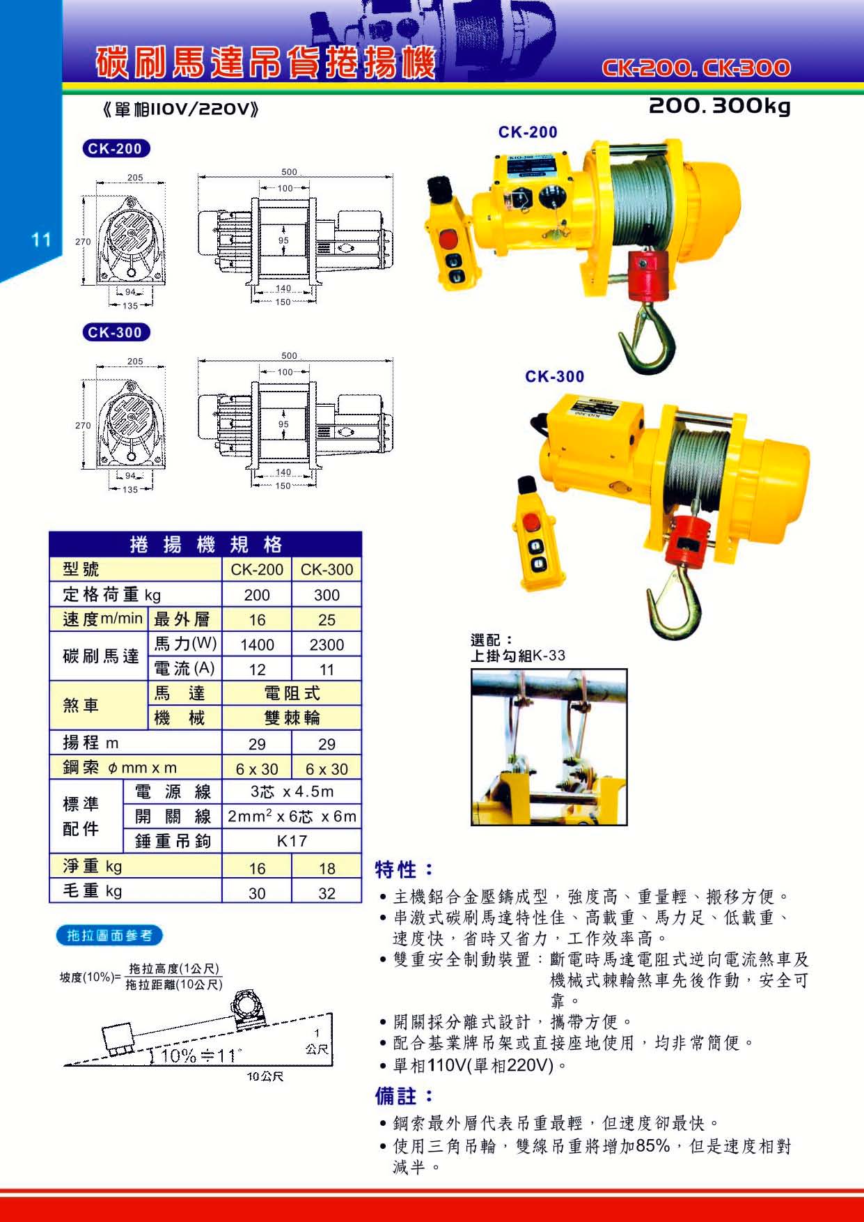 臺(tái)灣KIO CK-300/500碳刷馬達(dá)吊貨卷揚(yáng)機(jī)產(chǎn)品介紹: