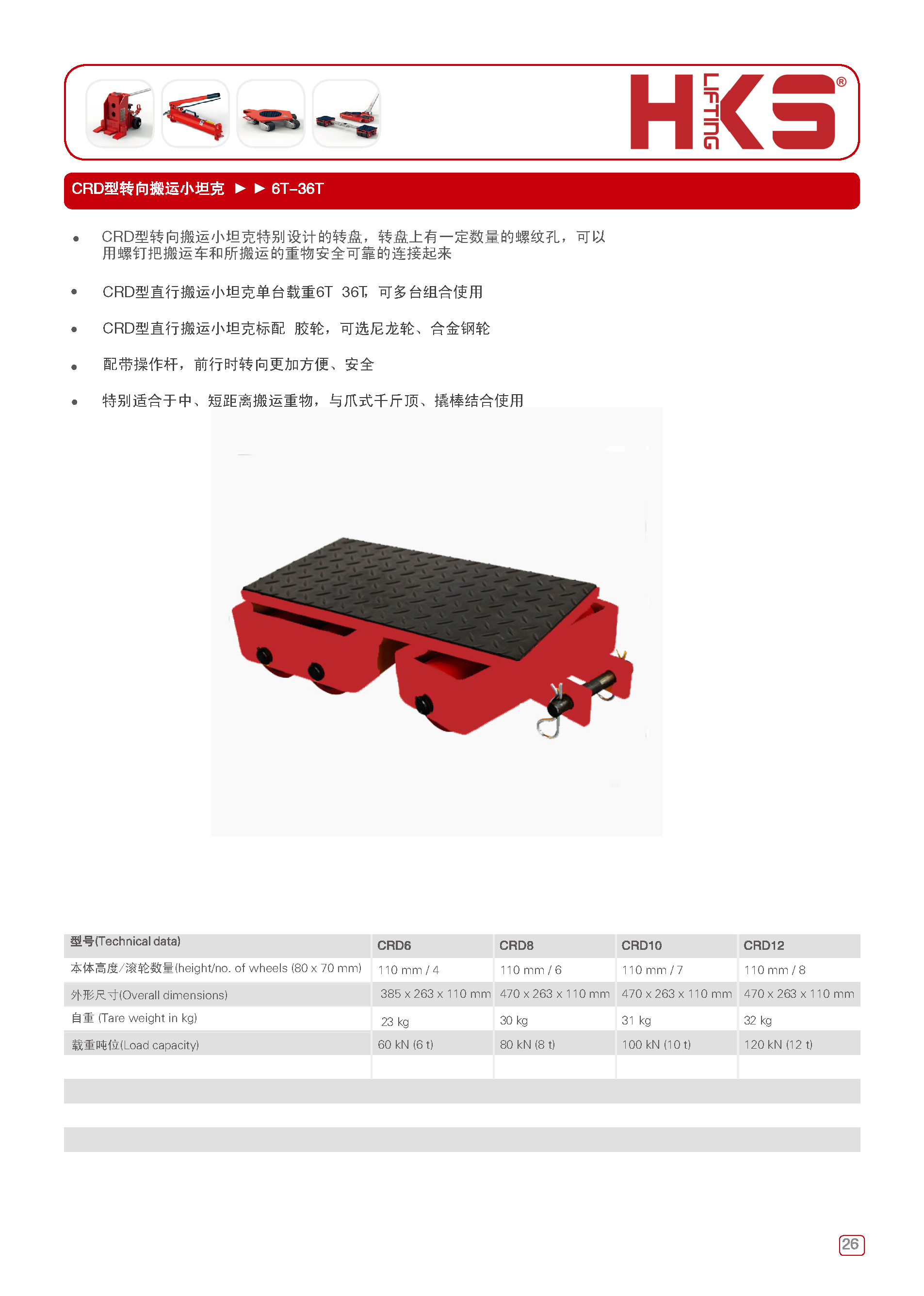 HKS-LIFTING艾馳楷時搬運(yùn)工具涵蓋了直行搬運(yùn)坦克車、轉(zhuǎn)向搬運(yùn)坦克車、萬向搬運(yùn)坦克車、手搖搬運(yùn)坦克車、履帶搬運(yùn)坦克車,載重噸位從2噸達(dá)千噸。