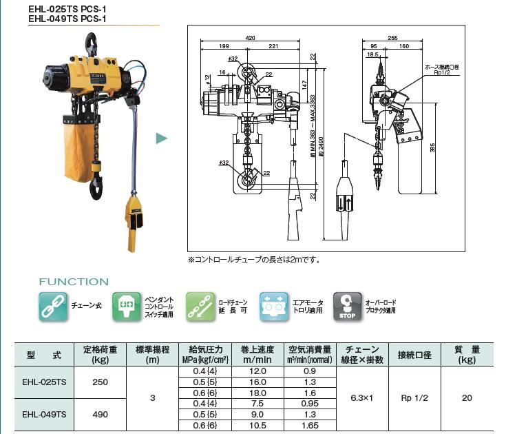限定載荷:250KG 標(biāo)準(zhǔn)行程:3m 鏈條線徑掛數(shù):6.3×1