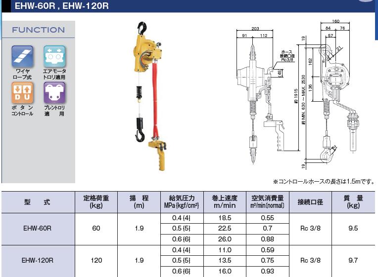 4.EHW氣動吊車系列配置有反向纏繞保護如果鋼索被拉出1.9米,系統(tǒng)使氣動馬達自動停止。