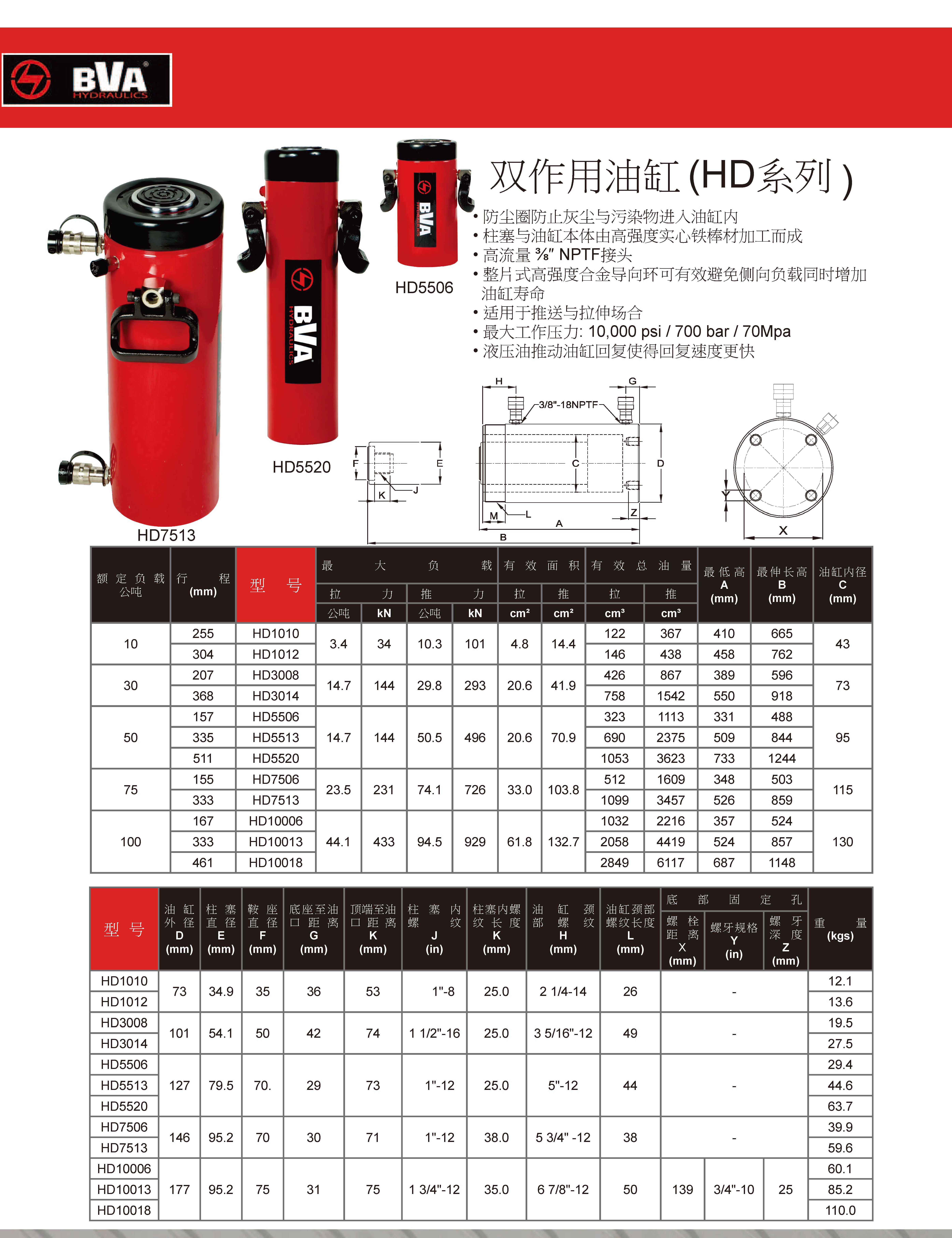 臺灣BVA雙作用液壓缸(HD系列)HD3008 HD10006