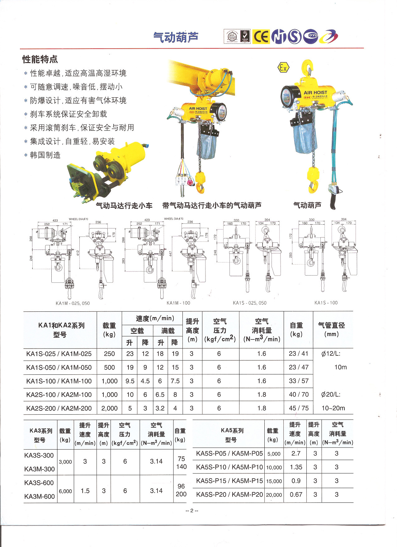 【韓國(guó)KHC氣動(dòng)葫蘆】韓國(guó)進(jìn)口KHC氣動(dòng)葫蘆產(chǎn)品分4個(gè)型號(hào):KA1型氣動(dòng)葫蘆、KA2型氣動(dòng)葫蘆、KA3型氣動(dòng)葫蘆和KA5型氣動(dòng)葫蘆