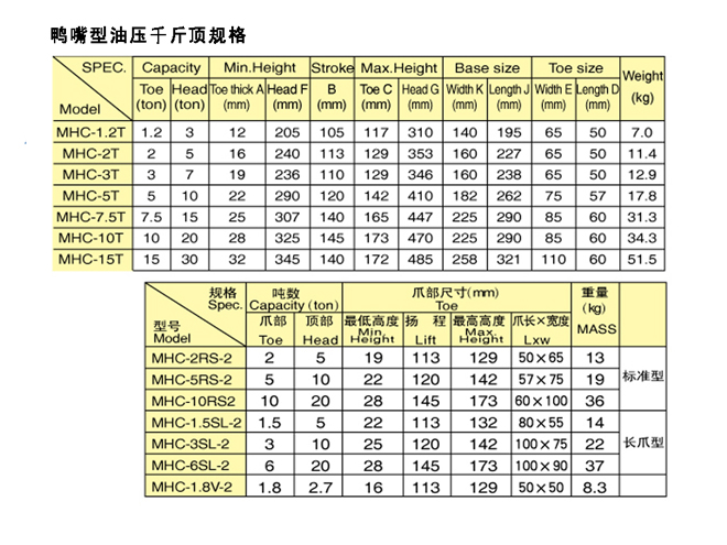 MHC-10RS-2是20T爪式千斤頂,爪部載重10T,頭部載重20T,凈重36kg。