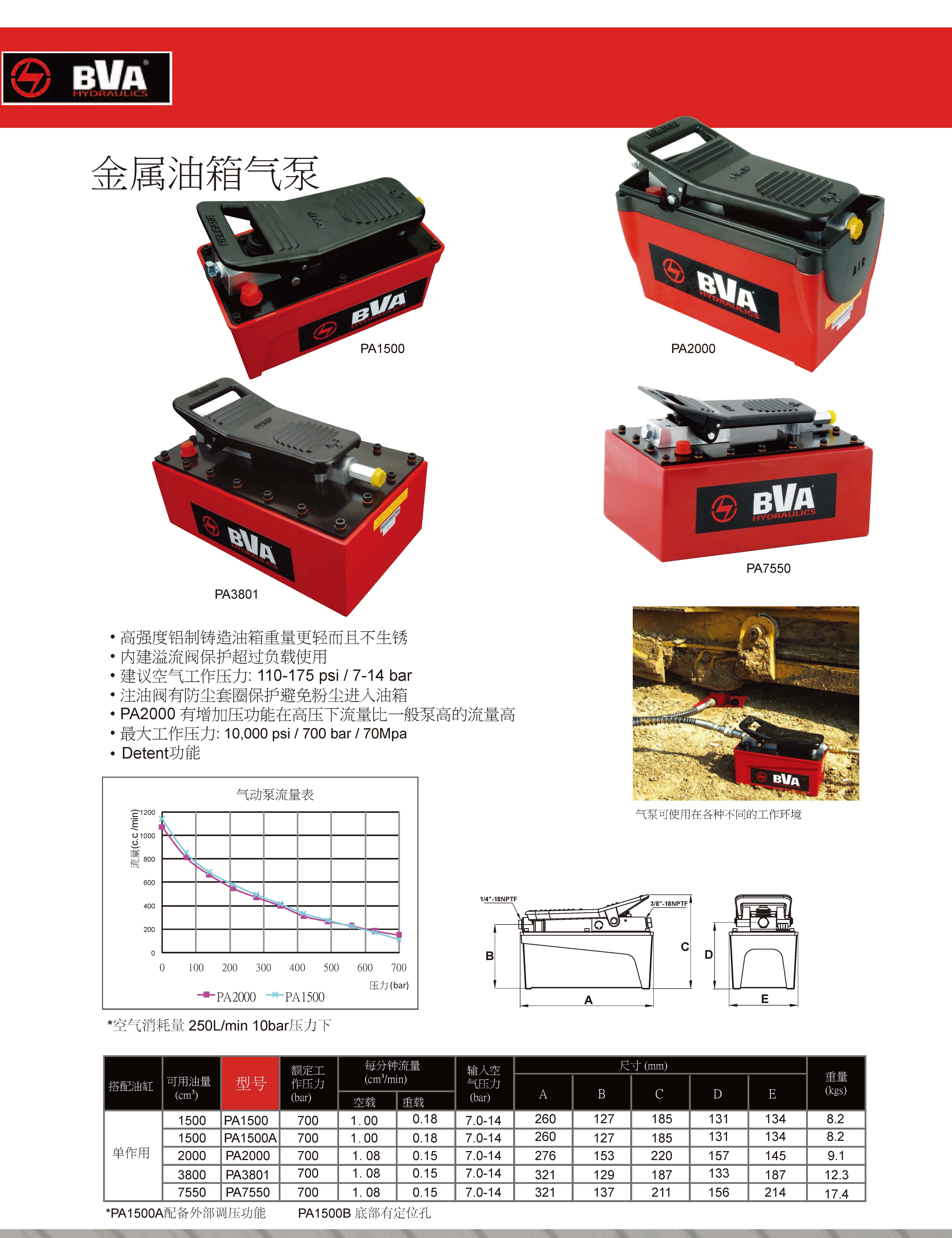 BVA泵類:SR05~SR10 BVA液壓擴(kuò)張器,BVA法蘭分離器,PA1500~ PA7550 BVA金屬油箱氣動(dòng)泵,PA600/PA600H BVA全方向操作式氣動(dòng)泵,PA1500M BVA雙作用缸用氣泵,PA1500L/PA3801L BVA線控式氣動(dòng)泵,P350~P1000 BVA雙速度鋁制手動(dòng)泵,P1201~P8701 BVA雙速金屬油箱手動(dòng)泵,P2301M~P8701M BVA雙作用缸手動(dòng)泵,P240L BVA低壓手動(dòng)泵,PEM0501C~PESM3005C BVA電動(dòng)泵,PARD1701~PAR4003 BVA旋轉(zhuǎn)式泵,PG5505 BVAHONDA引擎汽油泵。
