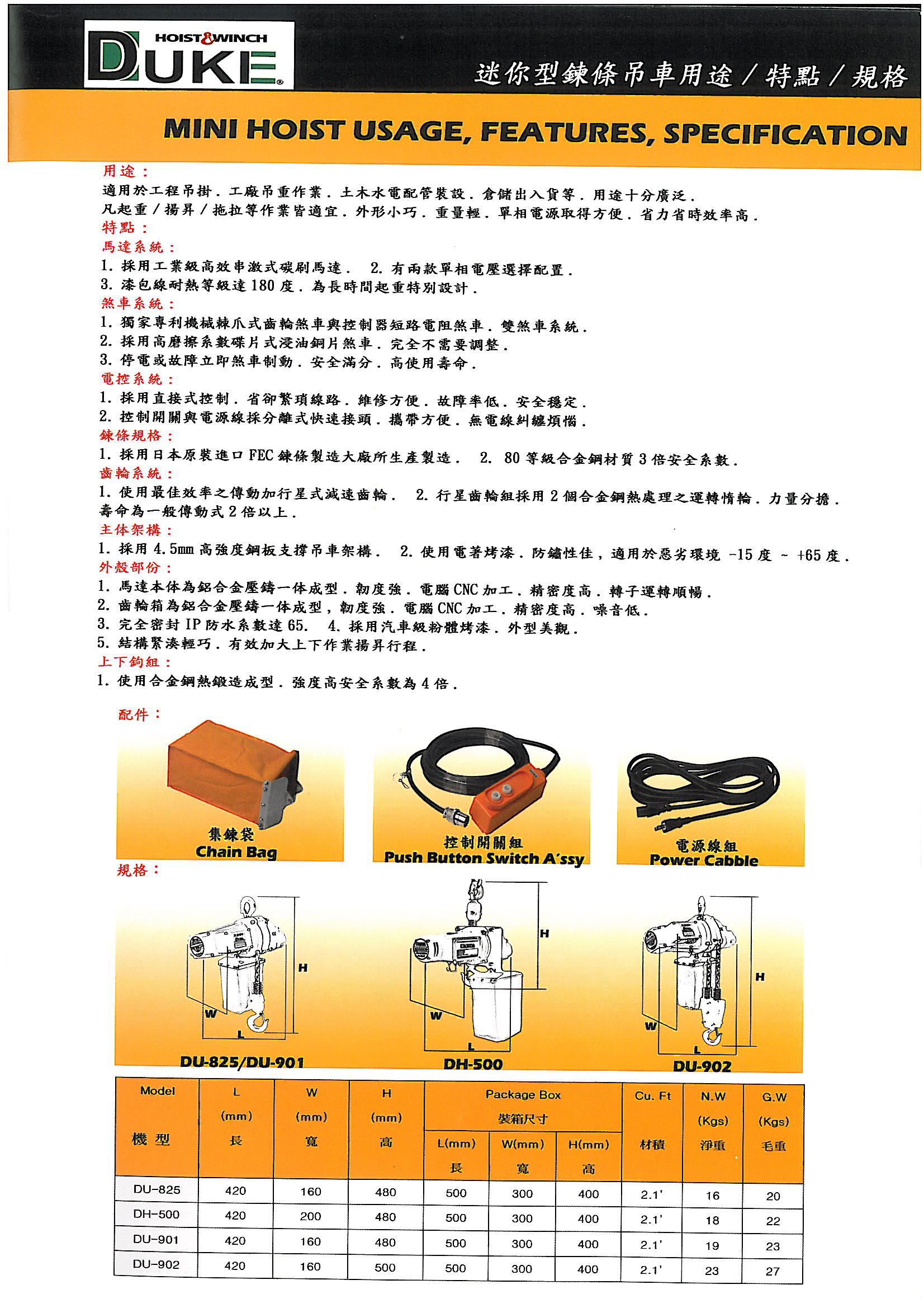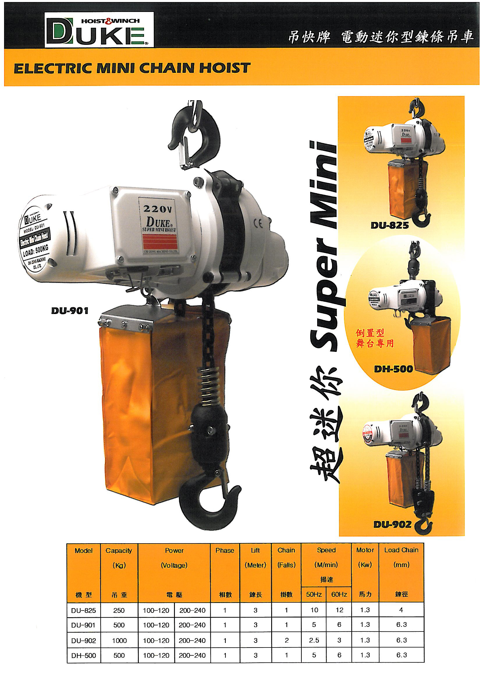 臺(tái)灣DUKE迷你鏈條電動(dòng)葫蘆|DU-825 DU-901迷你環(huán)鏈電動(dòng)葫蘆現(xiàn)貨