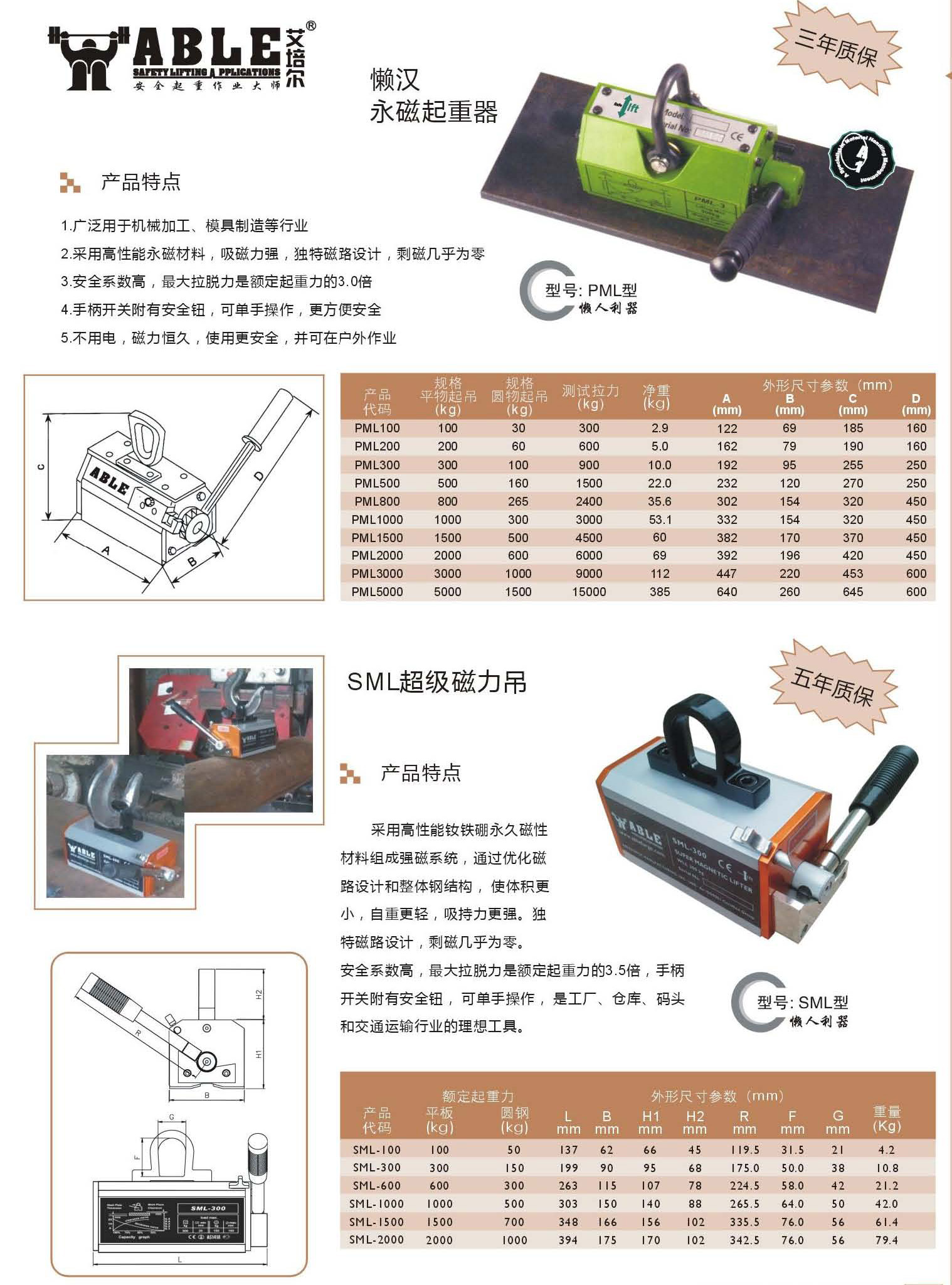 【產(chǎn)品名稱】美國ABLE艾培爾SML超強(qiáng)力永磁起重器